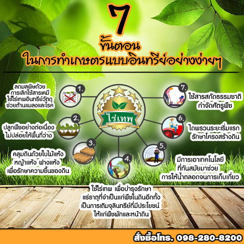 การทำเกษตรแบบอินทรีย์นั้นไม่ใช่เรื่องยากของเกษตรกรไทยอีกต่อไป เพราะไร่เทพ อาหารเสริมพืชใช้ในการทำเกษตรอินทรีย์ ซึ่งง่ายต่อการใช้งาน พกพาสะดวก ช่วยปรับปรุงดิน ปลอดภัยไร้สารพิษและเป็นมิตรต่อสิ่งแวดล้อม เมื่อดินเริ่มฟื้นมีความอุดมสมบูรณ์ตามธรรมชาติแล้ว ผลผลิตจะสูงขึ้น แถมยังช่วยรักษาสภาพแวดล้อมได้ดีอีกด้วย ดังนั้นเพื่อให้บรรลุผลตามที่ตั้งเป้าหมายไว้ ลองปฏิบัติตาม 7 ขั้นตอนดังนี้.