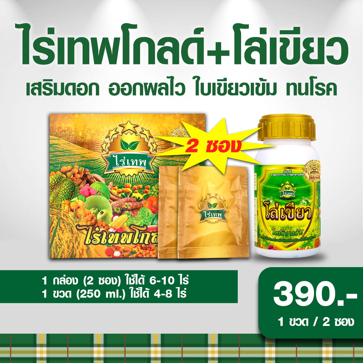 ชุดทดลอง ไร่เทพโกลด์ 2ซอง เสริมดอกออกผลไว ทนฝน ทนแล้งเพิ่มผลผลิต +โลเขียว ใบมันเขียวเร็ว ทนโรค ทนแล้ง