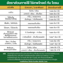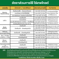 1 ซอง ใช้ได้ 3-5 ไร่ ผสมน้ำได้ 100-200 ลิตร
