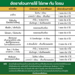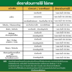 1 ซอง ใช้ได้ 3-5 ไร่ ผสมน้ำได้ 100-200 ลิตร