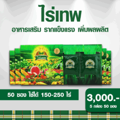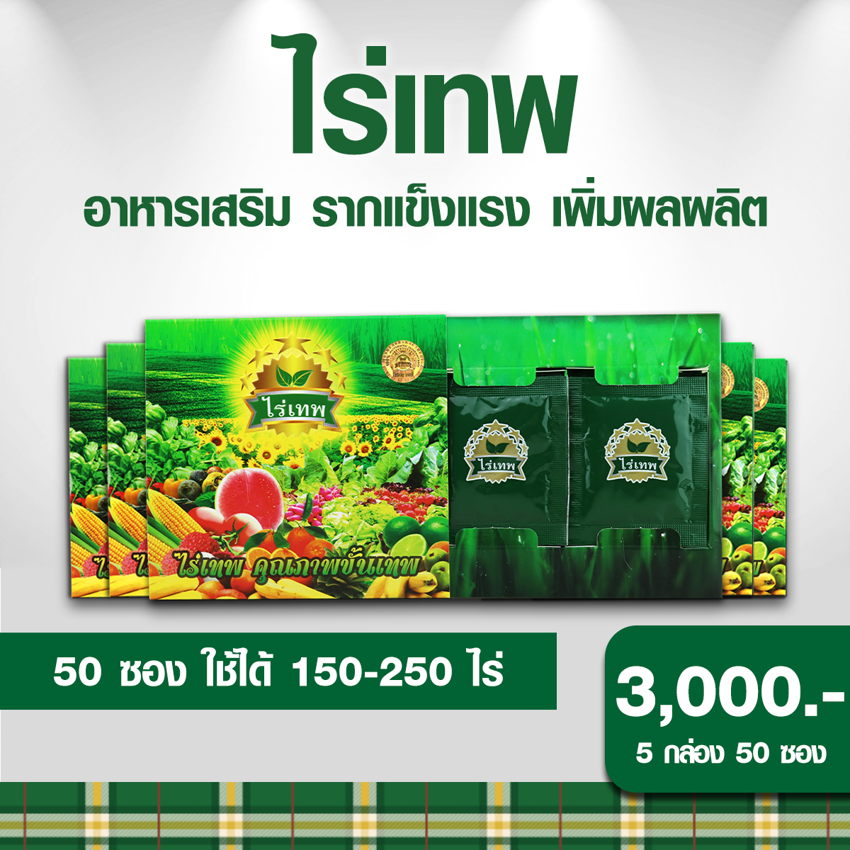 ไร่เทพ เป็นอาหารพืชสูตรผง ปลอดสารพิษ เป็นมิตรต่อสิ่งแวดล้อม เป็นสูตรพิเศษที่มีการเสริมคุณภาพของวัตถุดิบให้มีความเข้มข้น และมีประโยชน์ต่อพืชมากยิ่งขึ้น โดย 1 ซอง ประกอบไปด้วย สารฮิวมิค สาหร่ายทะเล สารฟูลวิค กรดอะมิโน และสารวิตามินสังเคราะห์จากประเทศอิสราเอล สะดวกต่อการพกพา ลดค่าขนส่งได้มาก จัดเก็บง่าย ขนย้ายง่าย ลดต้นทุนได้มาก สามารถละลายน้ำได้ดีและเร็ว ช่วยทำให้โครงสร้างของดินดี ดินโปร่ง ร่วนซุย น้ำและอากาศถ่ายเทสะดวก รากพืชแผ่ขยายได้ง่าย ผสมน้ำราดโคนต้น จะช่วยปรับสภาพดินเหนียวให้คลายตัวออก สามารถปลดปล่อยธาตุอาหารที่ถูกตรึงไว้ในดินให้พืชกลับนำมาใช้ใหม่ได้ใหม่อย่างเต็มที่ในดินทรายจะช่วยอุ้มน้ำ รักษาความเป็นกรด ด่าง ไม่ให้เปลี่ยนแปลงเร็ว
