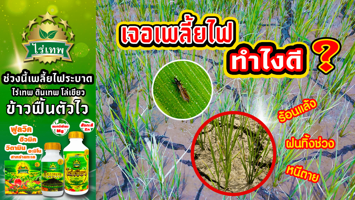 – ระยะเจริญเติบโต (25-30 วัน) ใช้ไร่เทพ 1ซอง + ดินเทพ 5-10 ซีซี ผสมน้ำ 100 ลิตร ฉีดพ่นให้ทั่วต้นทุก 10-15 วัน